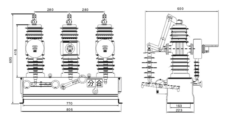 (6)可加裝戶外隔離開(kāi)關(guān)和斷路器形成一體化,斷路器與隔離開(kāi)關(guān)具有可靠的機(jī)械聯(lián)鎖裝置。