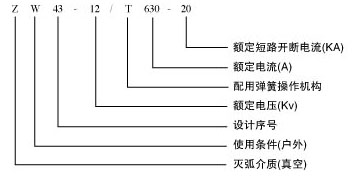二 ZW43-12型戶外交流高壓真空斷路器型號(hào)及名稱含義: